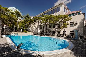 Крытый бассейн с подогреваемой морской водой длиной 25 метров с подводным гидромассажем находится в СПА-центре медицинского корпуса. Переходом глубины от 1,4 м до 2,2 м. В бассейне проходят тренировки по аквафитнесу и плаванью.