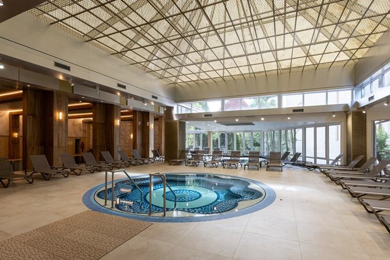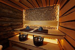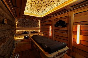 К услугам Гостей функционирует несколько саун: турецкая баня, классическая финская сауна, травяная фито-сауна, санариум, купель и бассейн с подогреваемой морской водой и водопадом. Также оборудована зона отдыха с шезлонгами.